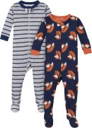 Baby Boys 2-Pack Footed Pajamas, Fox Grey, 18 Months