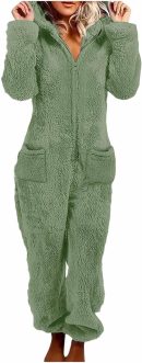 Fleece Onesie Pajamas for Women Sherpa Fuzzy Zipper Hooded One Piece Jumpsuit Warm Cinch Bottom Sleepwear with Pockets