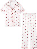 Girls Womens Pajamas Set, Satin Silky Button Down Loungewear 2 Piece Short Sleeve Pants Sets for Mommy Kids