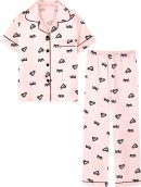 Girls Womens Pajamas Set, Satin Silky Button Down Loungewear 2 Piece Short Sleeve Pants Sets for Mommy Kids