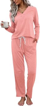 Women’s Pajama Sets Long Sleeve Lounge Sets Pjs Sleepwear with Pockets
